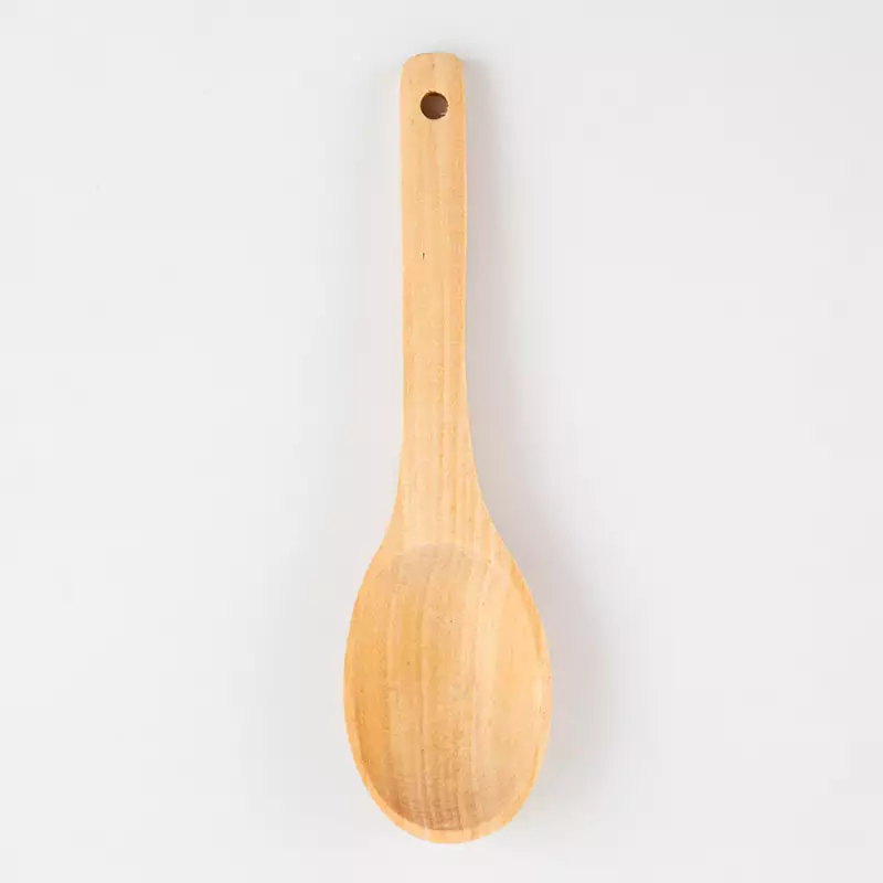 Cuchara Ovalada, fabricada en madera seleccionada totalmente natural, ideal para conservar el sabor de los alimentos y utilizar en recipientes de teflón.