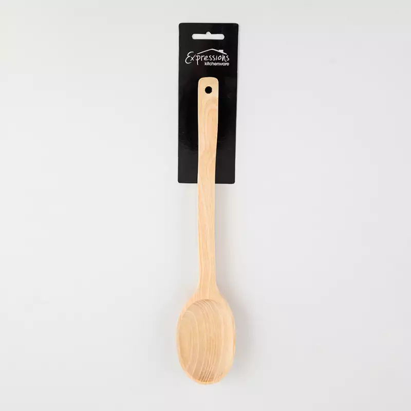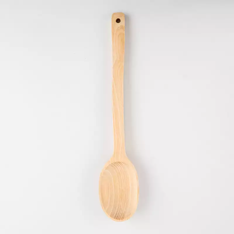 Cuchara Ovalada, fabricada en madera seleccionada totalmente natural, ideal para conservar el sabor de los alimentos y utilizar en recipientes de teflón.