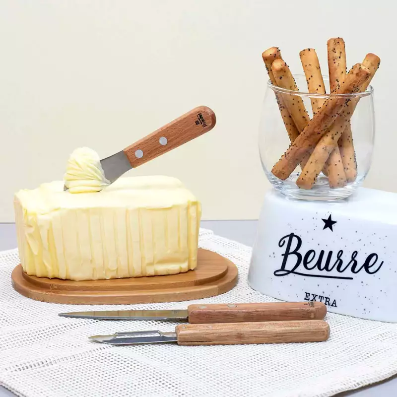 Cuchillos cook concept en acero inaxidable madera kd3294. Este juego de cuchillo para mantequilla y pelador de acero inoxidable quedará genial en su cocina gracias a su diseño, práctico, corta, pica, rebana y pela sus frutas, verduras y carnes. ¡Apreciará su ligereza y su incomparable afilado mientras prepara sus recetas!. Material de acero de madera dimensiones 1x18.2x2.1 50 % metal - acero inoxidable 50 % madera.