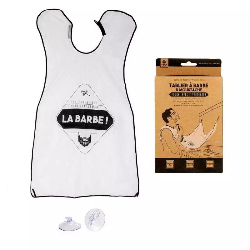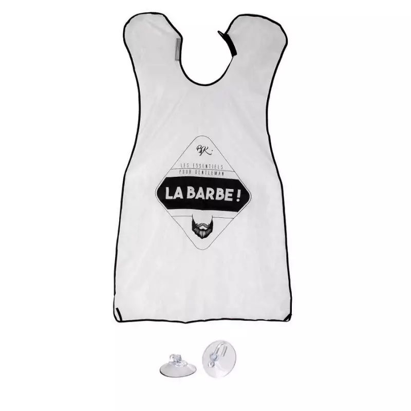 Delantal para afeitado. Marca: cosmetic club. Medidas: 70x110x0,1cm. Material: Poliéster. Colores: Blanco y Negro. El regalo perfecto para los caballeros está aquí. ¡El delantal para barba y bigote!. ¡Se acabaron los pelos en el lavabo o en el suelo del baño!. Fácil de instalar con sus 2 ventosas. Escote ajustable.