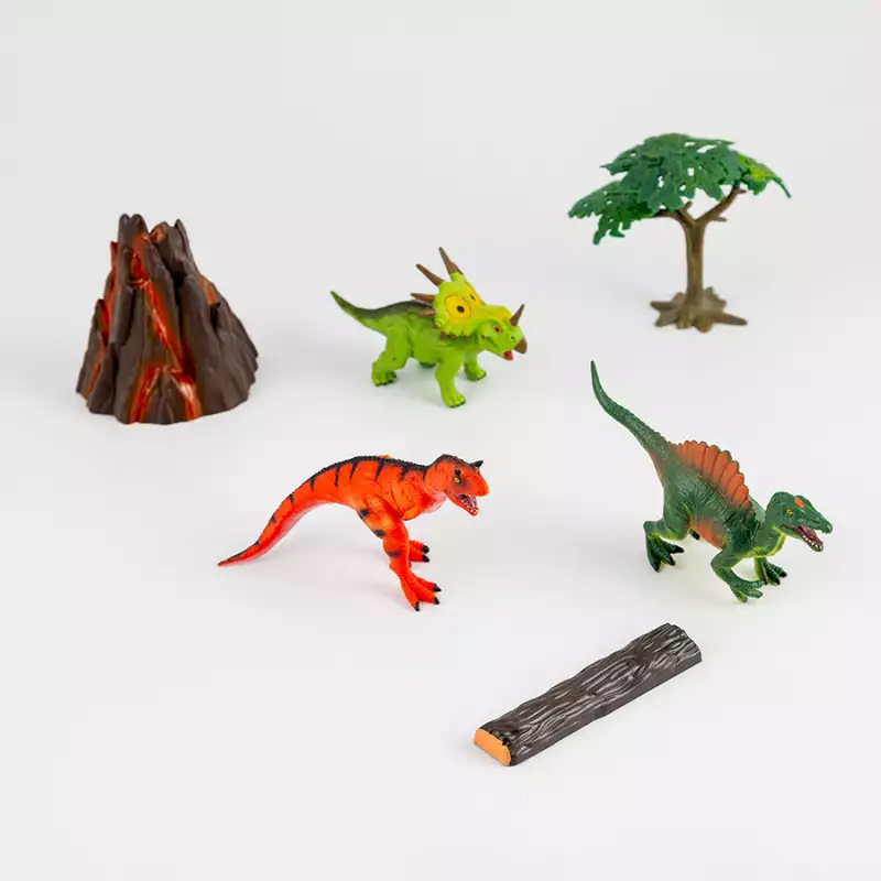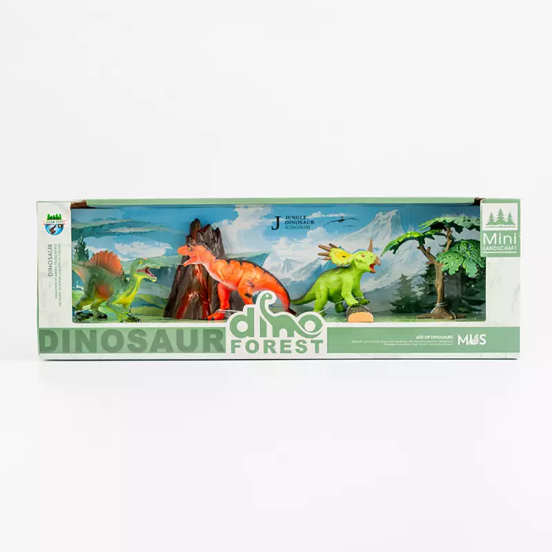 Dinosaurios, incluye 3 figuras mini de diseño realista, 1 arbol, 1 montaña y 1 tronco, los dinosaurios son atractivos para los niños de todas las edades, despiertan el juego educativo, creativo y divertido proporcionando al infante curiosidad por conocer más sobre la historia, perfecto para interactuar solo, con los padres o amiguitos, hermoso embalaje para regalar, ideal para coleccionar, dimensiones del producto 43x11x14cm. Edad recomendada de uso mayor de 3 años.