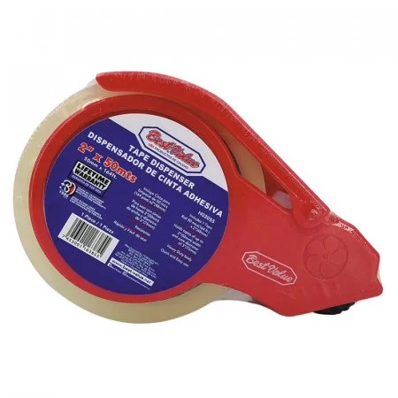 Dispensador para usar con cintas de hasta 2" (50mm) de ancho y diámetro de 3" (75mm). Incluye 1pza de cinta adhesiva.