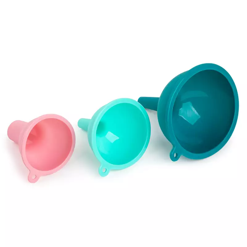 * Juego de 3 embudos de silicona. * Perfectos para llenar botellas/recipientes pequeños. * Sin bpa. * resistente al calor hasta 428 grados f. Los productos marcados como 'PRODUCTO SURTIDO' pueden no ser idénticos a los que aparecen publicados en las imágenes. Las imágenes son ilustrativas. Al comprar un producto identificado como producto surtido, aceptas que podrás recibir un producto con características y atributos tangibles diferentes a los que aparecen en las imágenes del sitio o la publicidad. Los productos surtidos mantendrán las propiedades físicas, químicas y técnicas necesarias para su funcionamiento y uso de acuerdo a su naturaleza.