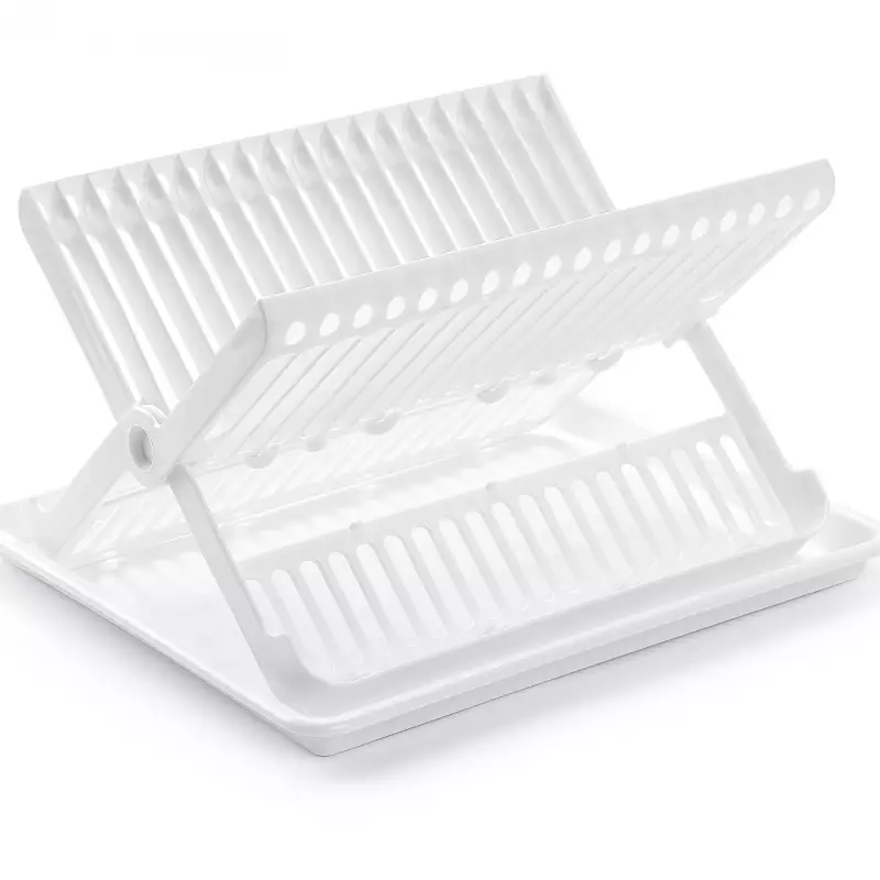 Escurreplatos en forma de tijera color blanco + bandeja, inferior en plastico, en plastico. Medidas: 37 X 33 X 21 CM, Facil de armar.