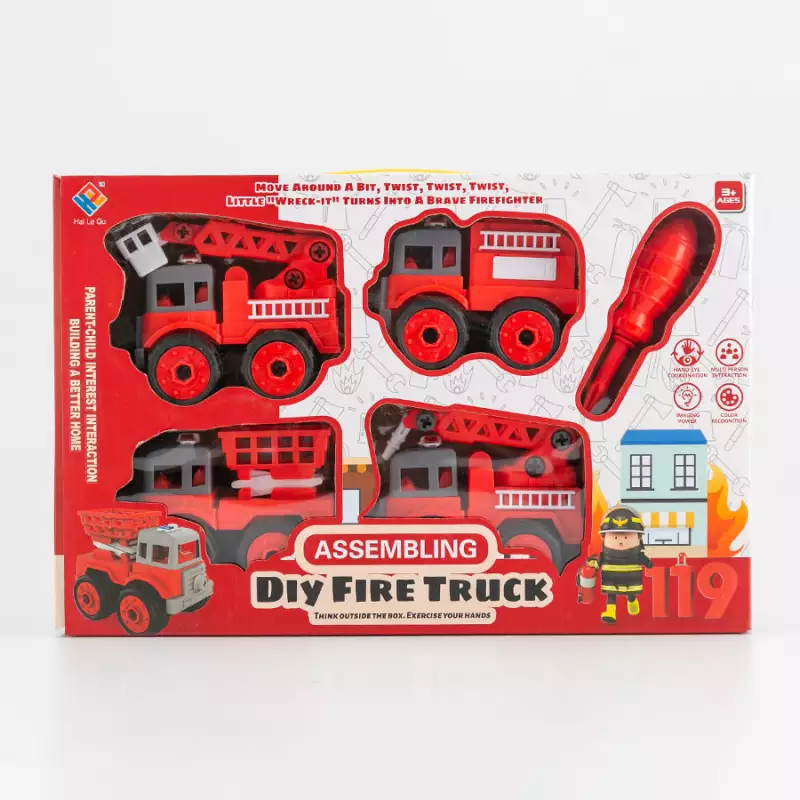 Juego de vehiculos de bomberos armables, incluye 4 carros, 1 destornillador, 1 unión de tornillos, juguete educativo de construcción, aprendizaje ingenioso, permite a tu niño desmontar y volver armar, gran opción para los niños que les gusta construir, motiva a los infantes a desarrollar y mejorar sus habilidades motoras y prácticas, juego interáctivo padres e hijos, fabricado con plástico de calidad dimensiones del producto 35.2x8.6x23.5cm. Edad recomendada de uso mayor de 3 años.
