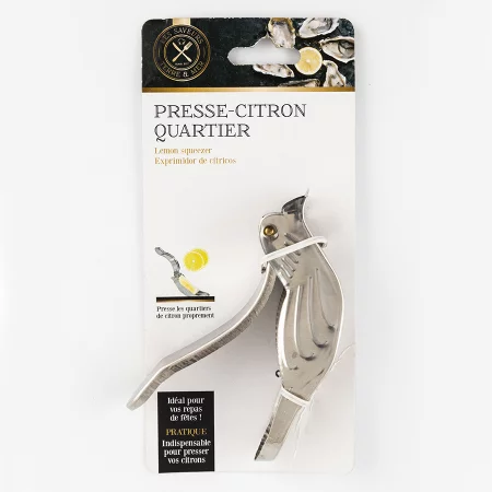 • pon tu limón y presiona la palanca con facilidad gracias al mecanismo inteligente de este accesorio. • no más derrames, manchas y dedos pegajosos. • material: acero inoxidable. dimensiones 11.5x3x3.98 cm