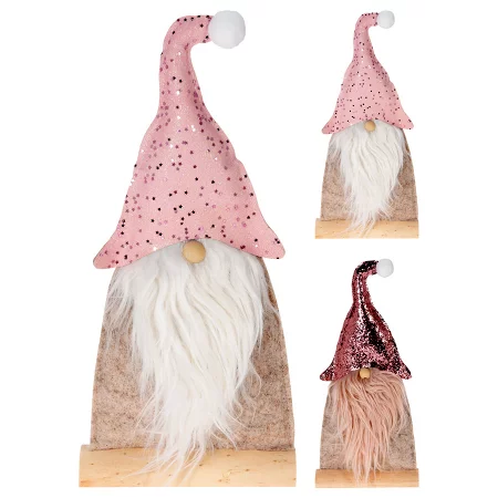 Figura decorativa en forma de gnomo de navidad de 34 cm de alto con base en madera, color rose gold. Este producto es surtido. Se vende por unidad. Los productos marcados como "PRODUCTO SURTIDO" pueden no ser idénticos a los que aparecen publicados en las imágenes. Las imágenes son lustrativas. Al comprar un producto identificado como producto surtido, aceptas que podrás recibir un producto con características y atributos tangibles diferentes a los que aparecen en las imágenes del sitio o la publicidad. Los productos surtidos mantendrán las propiedades físicas, químicas y técnicas necesarias para su funcionamiento y uso de acuerdo a su naturaleza.