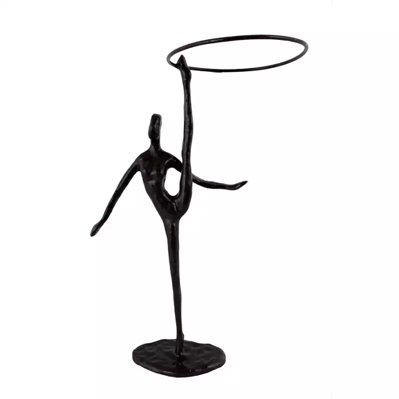 Figura decorativa Monocromía 8×21,2×13,3 cm, elaborada en hierro de color negro con forma abstracta de gimnasta. Su postura expresiva y líneas depuradas evocan movimiento y equilibrio, convirtiéndola en una pieza escultórica ideal para repisas, mesas o vitrinas. El tono negro refuerza su elegancia sobria, perfecta para ambientes contemporáneos, minimalistas o de inspiración artística.