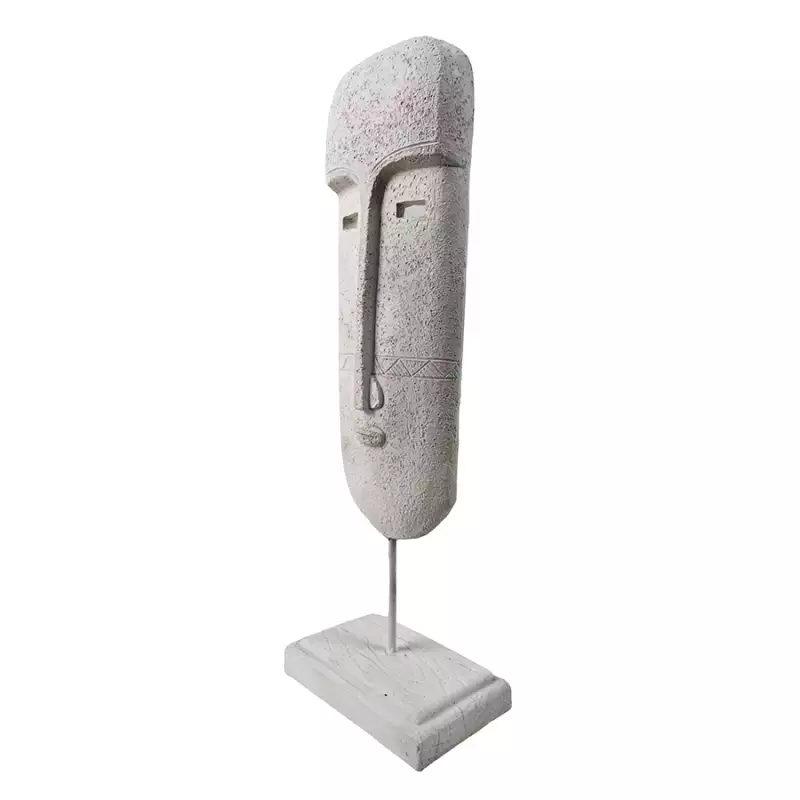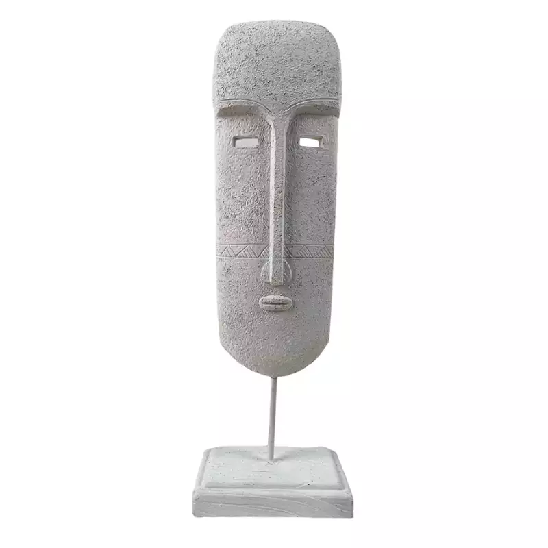 Figura decorativa Monocromía 7,4×34×11,3 cm, con diseño de máscara en color blanco. Su forma alargada y estilizada aporta una presencia escultórica sutil, ideal para destacar en repisas, consolas o muros decorativos. El acabado blanco realza su estética simbólica y serena, integrándose con armonía en espacios contemporáneos, minimalistas o de inspiración artística.