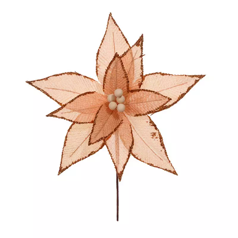 Flor navideña decorativa, fabricada en poliester, plastico y alambre de metal, ideal para bricolaje creativo, coronas navideñas, para colocar en el pino, etc