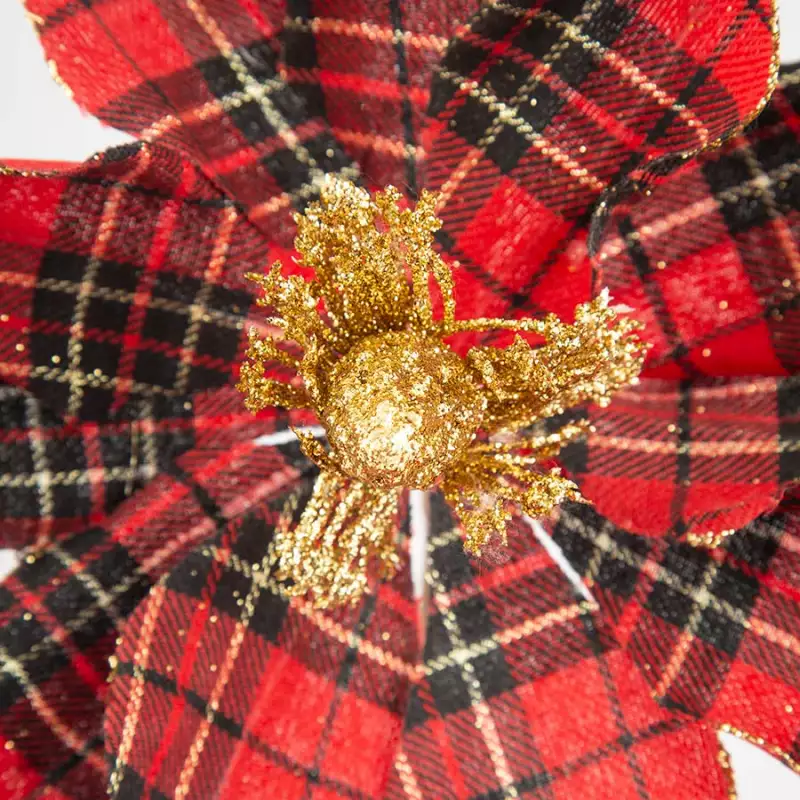 Flor Navideña Ponsetia, medidas: 30X40Cm, material: Tela, Plastico, Alambre, Papel, Color: Negro - Blanco