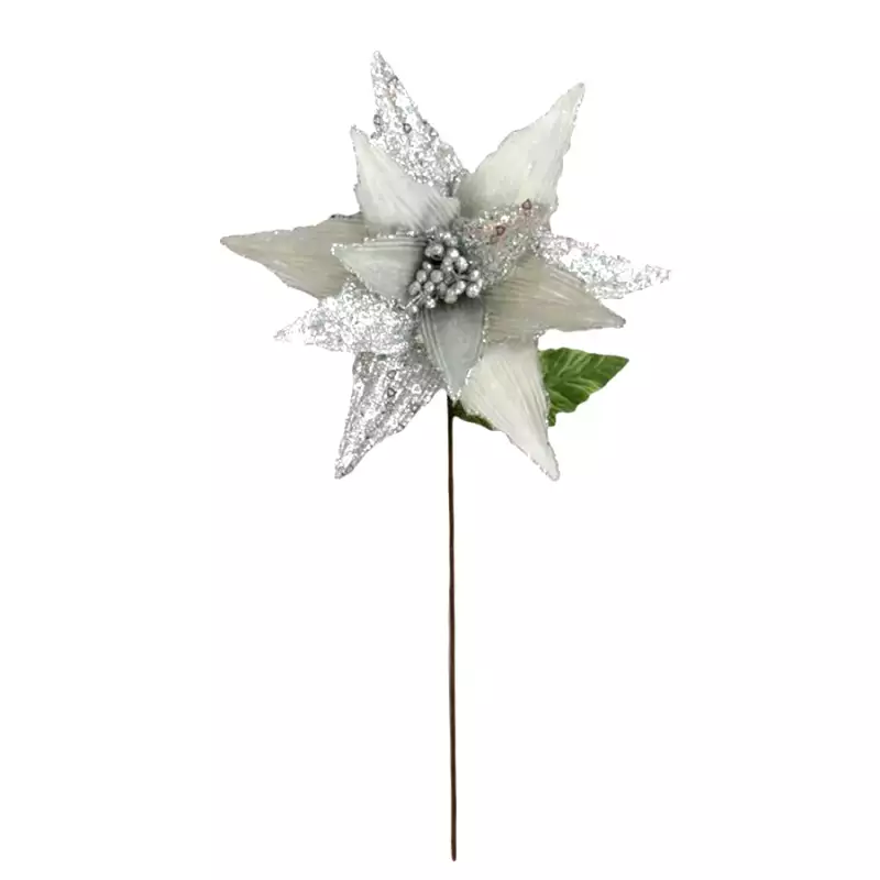 Flor navideña poinsettia blanca 33x55cm