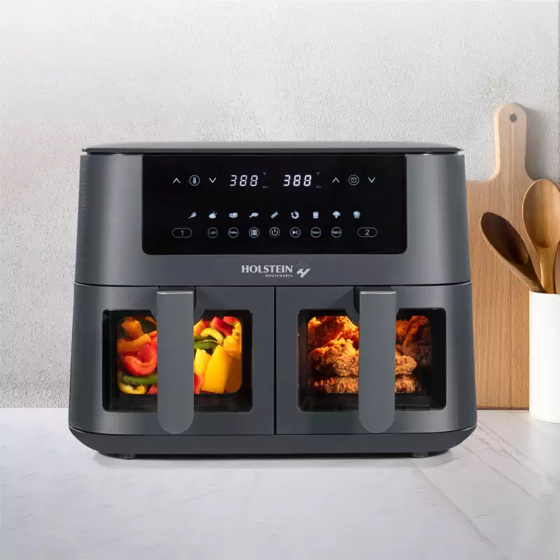 Lleva tu cocina al siguiente nivel con la freidora doble Holstein HH-09114021DG. Con dos cestas independientes, puedes cocinar dos platos diferentes al mismo tiempo sin mezclar sabores. Gracias a su tecnología Air (circulación de aire caliente), ofrece resultados crujientes con poco o sin aceite, ideal para preparaciones más saludables.