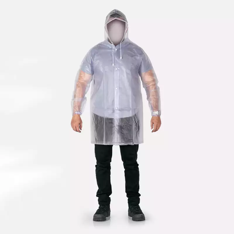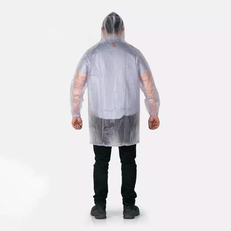 Gabardina impermeable sellada por alta frecuencia. Con capota integrada, ajuste por medio de broches y puños resortados. Pvc siliconado calibre 8. Reforzada en la zona de las axilas. Color transparente. Para uso a la intemperie. Ideal para uso casual y movilidad en bici o eléctrica.