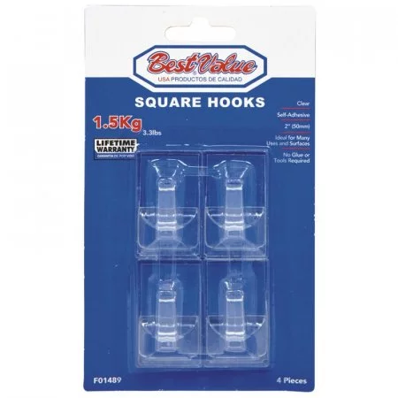 Gancho B.V. F01489 Plástico Cuadrado Adhesivo X4 Unidades