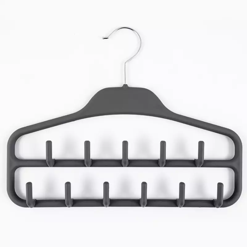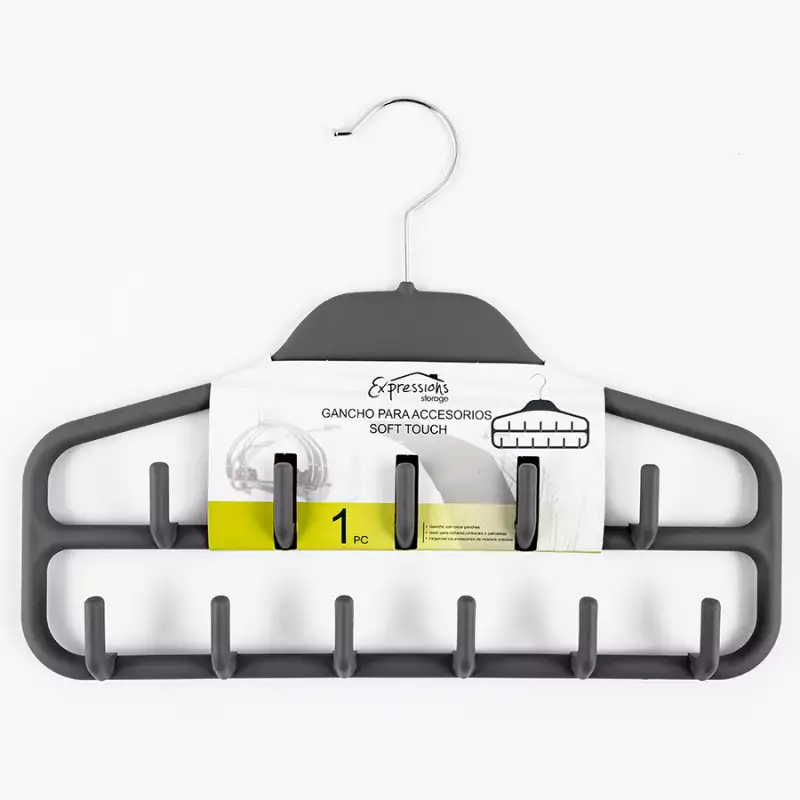 Elaborado en metal cromado con recubrimiento en material Soft touch, para uso de corbatas, accesorios, collares, pañoletas etc