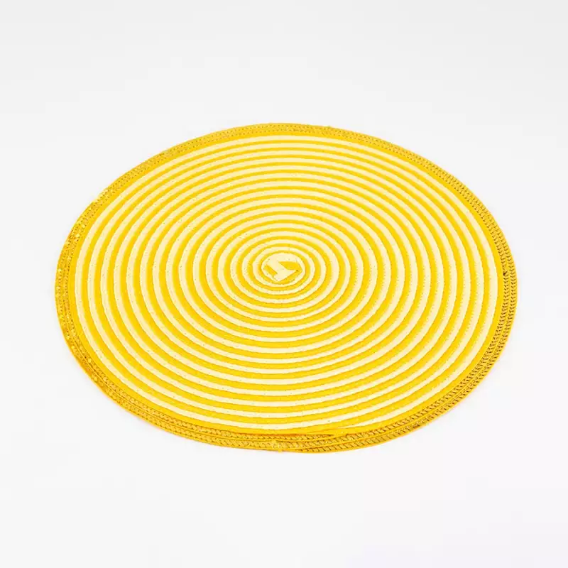 Individual Expressions redondo de 38x38 cm en color Amarillo, elaborado en poliéster, es un individual funcional y decorativo que protege la mesa y aporta un toque moderno; su material facilita la limpieza y es ideal para uso diario en cualquier ambiente del hogar.
