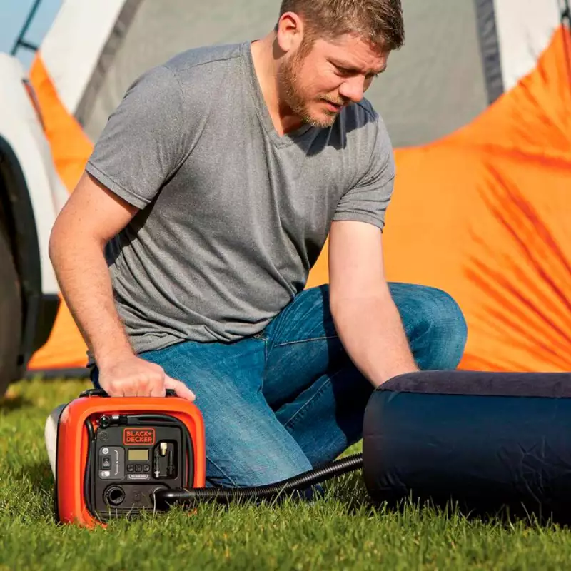 El inflador multipropósito Black + Decker 12V CC puede manejar muchas tareas de inflado. Su salida de alto volumen llena rápidamente grandes inflables como balsas y colchones de aire, mientras que la función de desinflado vacía rápidamente el aire para una limpieza rápida. La salida de alta presión funciona para inflar neumáticos o balones deportivos. Con un manómetro digital y tecnología de apagado automático, este inflador le brinda la tranquilidad de configurarlo y olvidarlo.