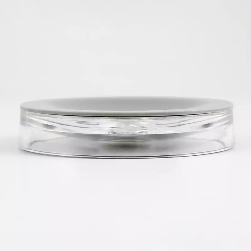 Jabonera de polietileno en color gris, con dimensiones de 12x2x9 cm, diseño funcional y resistente.