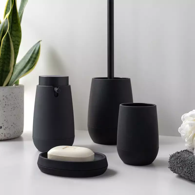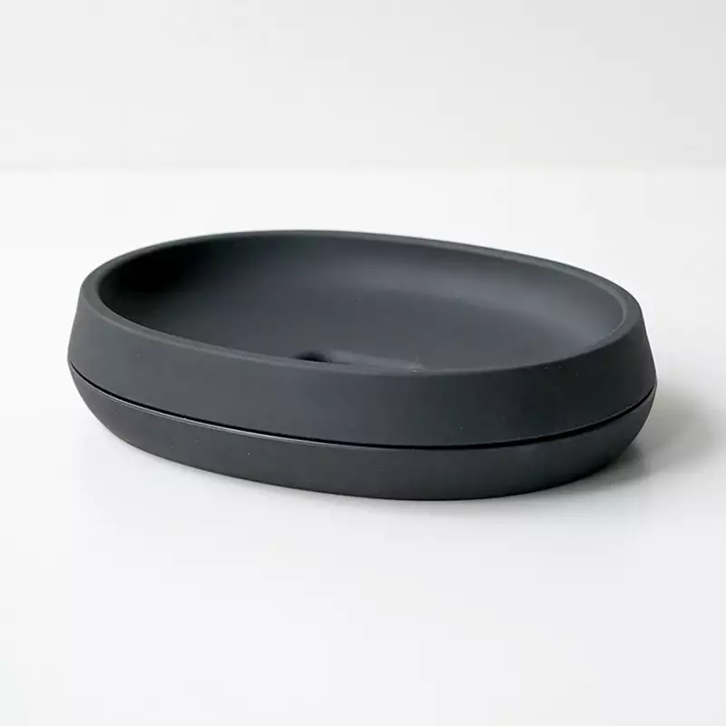 Jabonera color negro mate, con diseño moderno y elegante. Dimensiones: 12.8x9.7xH.2