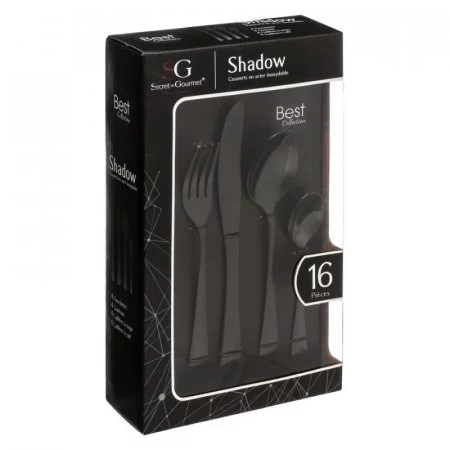 Juego de Cubiertos 16 Piezas Negro en Acero Inoxidable