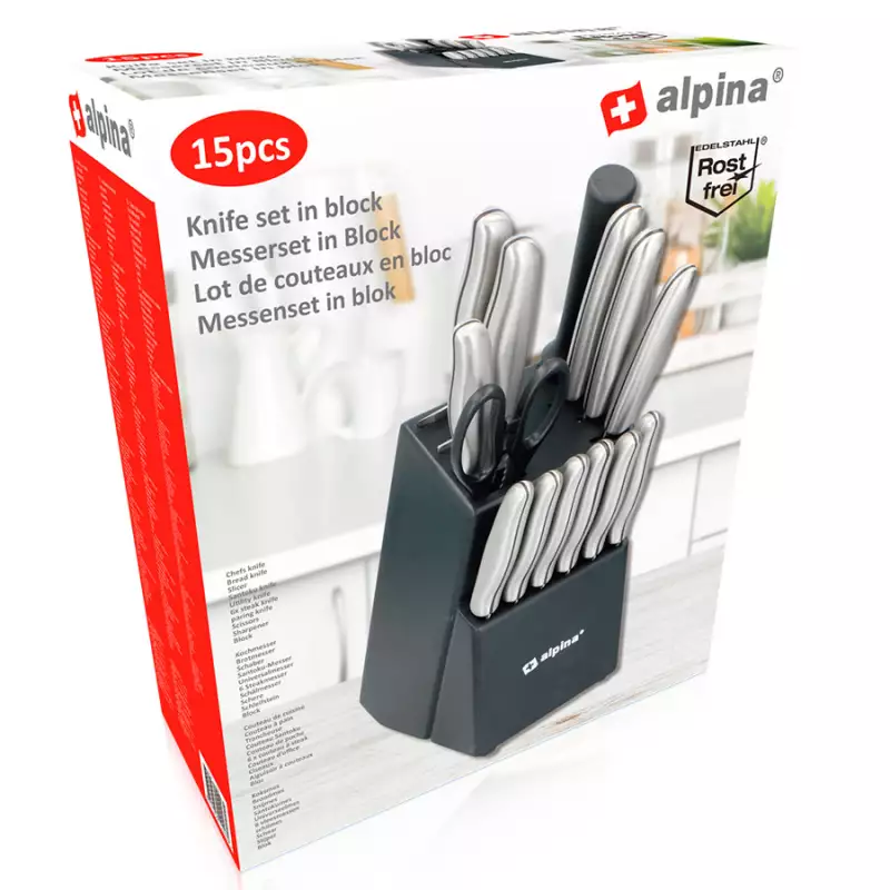 Juego de Cuchillos + Taco 15 Piezas Alpina