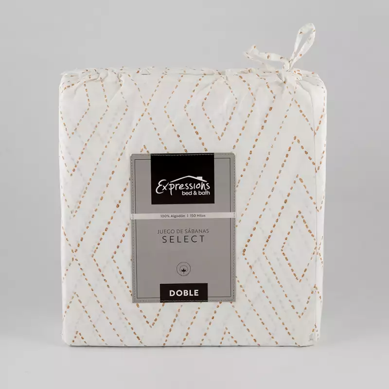 Inicio > TEXTIL HABITACIÓN BAÑO Y ACCESORIOS > Textiles habitación > Juegos sábanas duvets y piezas sueltas > Juego Sabanas Expressions Geometric 150H Doble Taupe 100% Algodon