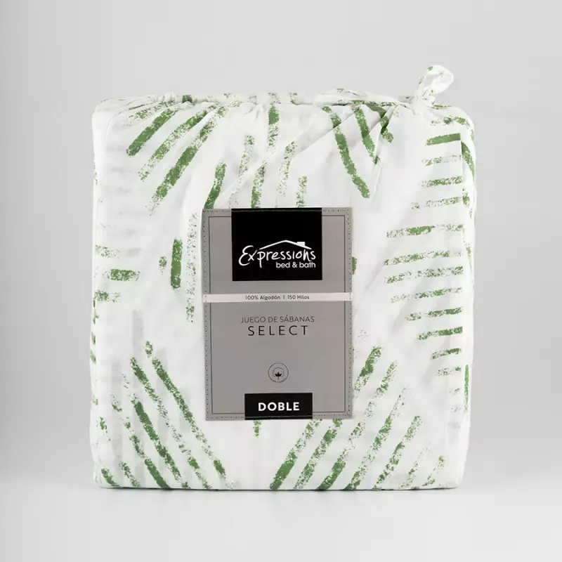 Juego Sabanas Expressions Geometric 150H Doble Verde 100% Algodon