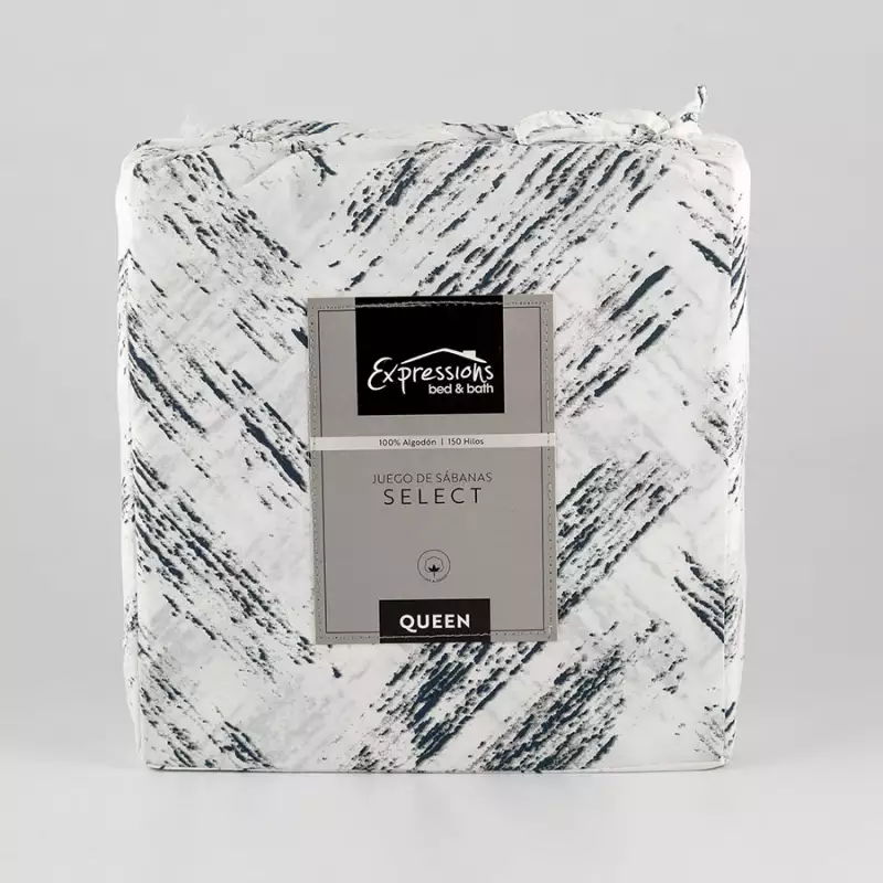 Juego Sabanas Expressions Geometric 150H Queen Azul 100% Algodon