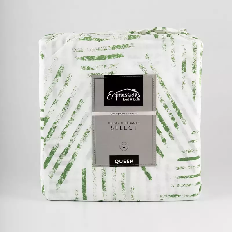 Juego Sabanas Expressions Geometric 150H Queen Verde 100% Algodon