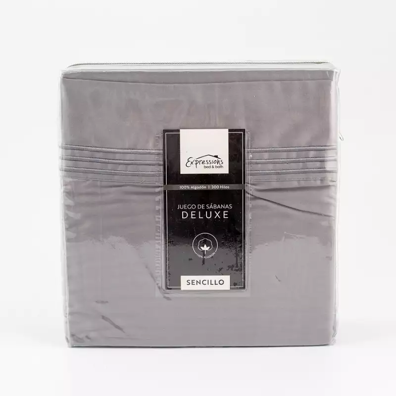 Juego de sábanas 100% algodón 300 hilos 3 Piezas Expressions gris tamaño sencillo, incluye: 1sábana ajustable + 1 sábana plana + 1 funda de almohada