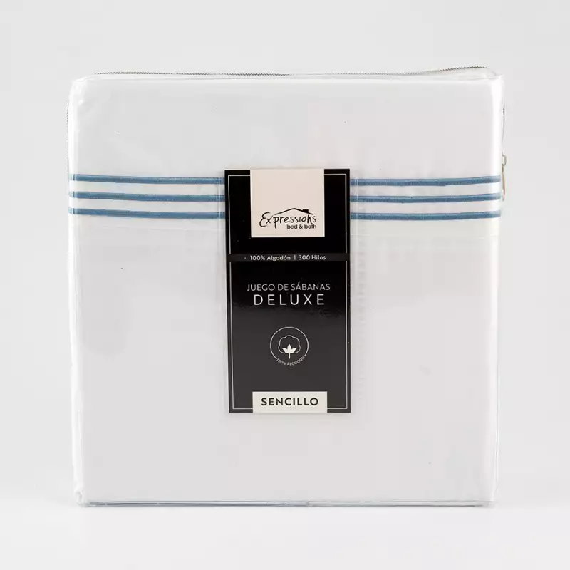 Juego de sábanas 100% algodón 300 hilos 3 Piezas Expressions blanco tamaño sencillo, incluye: 1sábana ajustable + 1 sábana plana + 1 funda de almohada
