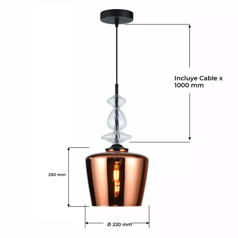 Lámpara Colgante Akira Rose Vidrio Color Cobre