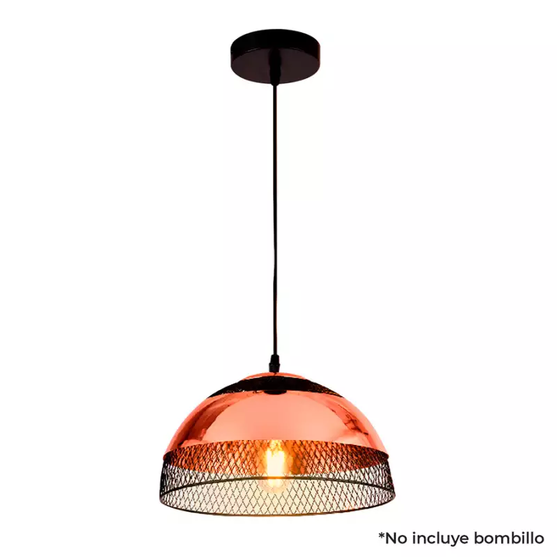Lámpara Colgante Collage Malla Metalica Negra Y Cobre