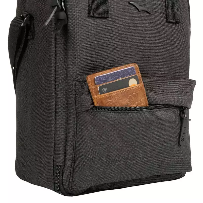 La Lonchera Etern negra combina estilo y funcionalidad en un diseño sofisticado. Su amplio compartimento principal con cremallera garantiza seguridad, mientras que su bolsillo frontal de acceso rápido mantiene tus esenciales siempre a la mano. El forro interno impermeable y térmico conserva la frescura de tus comidas, asegurando su protección. Versátil y cómoda, puedes llevarla de dos formas: con manijas o correa de hombro.