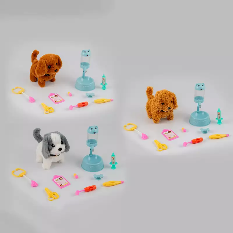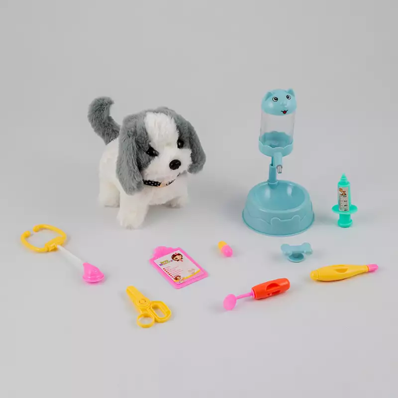 Adorable mascota interáctiva, simulación de rol, kit de cuidado veterinario, incluye 1 perro, 1 dispensador de agua, 1 jeringa, 1 tijera, 1 termómetro, 1 plato, 1 esponja, 1 capsula, 1 estetoscopio, 1 hueso, los niños pueden llevar este juguete a todos lados y cuidar a sus mascotas donde quiera que vayan, combina diversión y creatividad, ayuda a los niños a desarrollar empatía, y aprender la responsabilidad efectiva, requiere 2 pilas AA no inlcuídas, fábricado con materiales de alta calidad, dimensiones del producto 34x13x26cm. Edad recomendada de uso mayor de años.