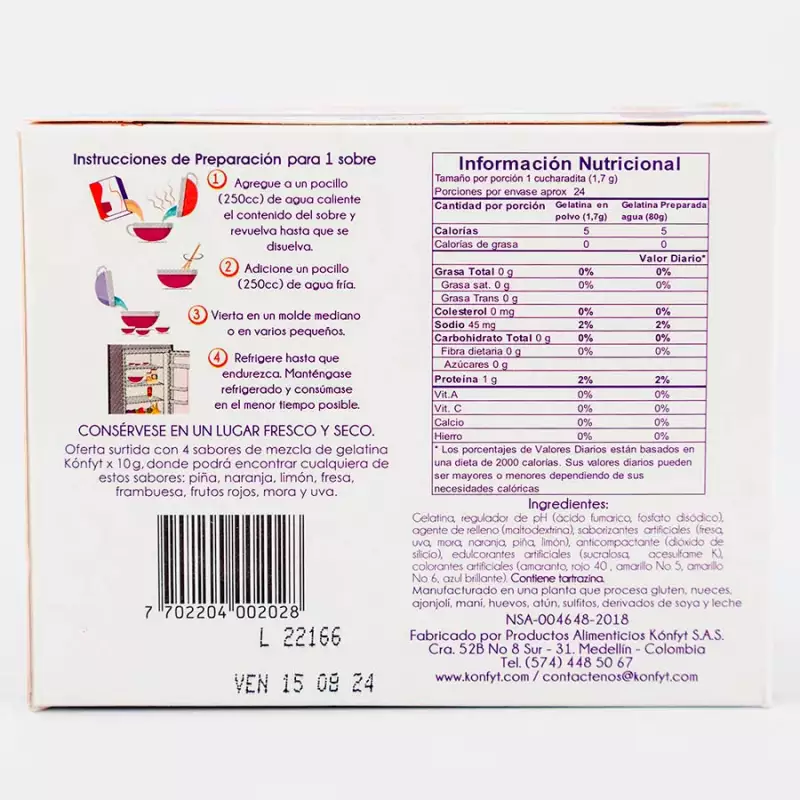 Mezcla para preparar gelatina de sabores surtidos sin azúcar adicionada x 4 sabores (10 g)