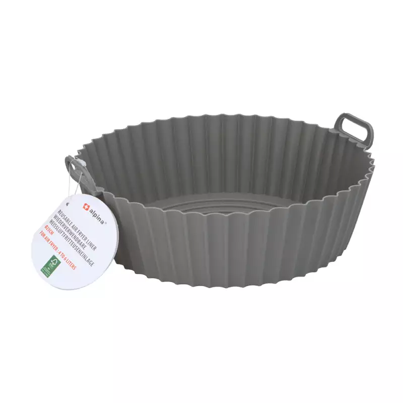 Molde Redondo Alpina Para Airfryer, De 23 Cm De Diámetro, En Silicona Reciclable Y Colores Surtidos.