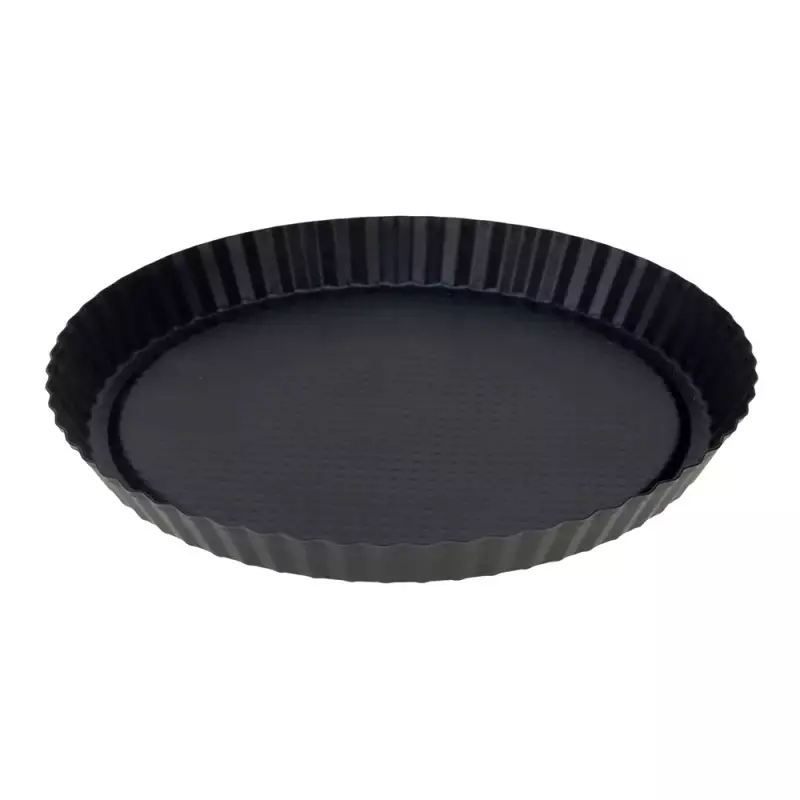 Molde para Tortas. En Acero - Antiadherente, Color Negro, Redondo, Diámetro 28 x 3.5 mm. Utensilio de repostería evitar que los alimentos se peguen durante el hornearlo, facilitando su desmolde y la posterior limpieza. Este recubrimiento es duradero y ayuda a que la cocción sea uniforme gracias a la buena conductividad del calor del acero.
