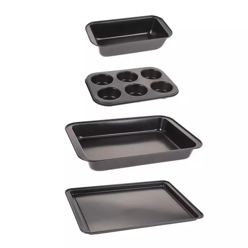 Moldes x 4 Pzs. En Metal Revestimiento Antiadherente, recipientes resistentes al calor Max. 230 °C. Diseñado para dar forma a preparaciones horneadas como pasteles o bizcochos al hornearse o a preparaciones frías como postres o flanes. Su función es asegurar una cocción o enfriamiento uniforme, logrando que la receta adopte la forma deseada y se conserve al desmoldarla, siendo esencial para la consistencia y el aspecto final del producto.