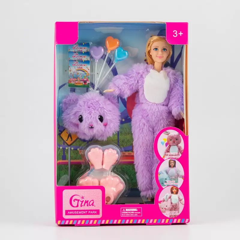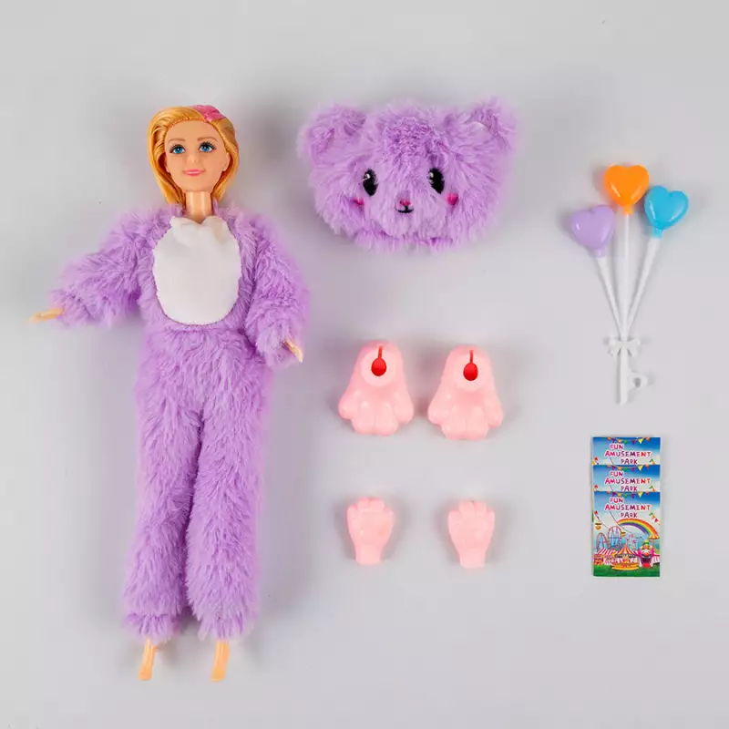 Adorable muñeca fashion con temática de pijama disfraz oso con acesorios, diseñada con materiales de calidad, lindo atuendo, su extructura garantiza que la infante pueda jugar en cualquier lugar, interior o exterior sin preocuparse, fáciles de lavar, promueve la creatividad e imaginación, perfecta para fomentar el juego de rol, incluye 2 guantes, 2 zapatos, 3 tarjetas, 1 dizfraz, 1 màscara de oso, 1 globo, dimensiones del producto 21x5.5x32.5cm.