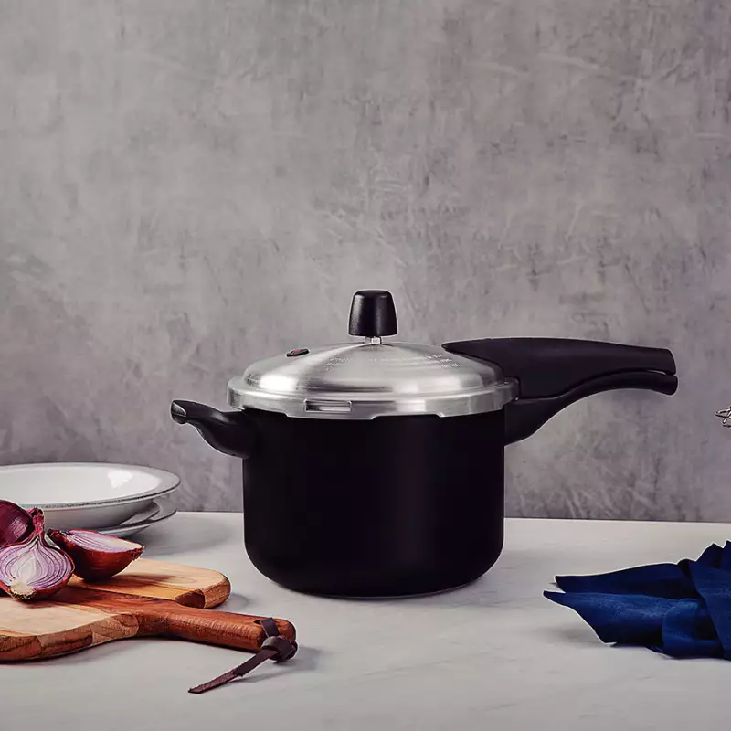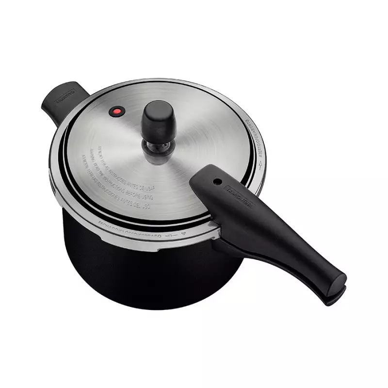 Olla a presion con cuerpo de aluminio, espesor de 3,2 mm, revestimiento interno y externo antiadherente Starflon Max que no se pega, proporciona una cocción rápida y uniforme, fácil de limpiar y duradero, asas, superiores e inferiores fabricadas en Baquelita resistente al calor que ofrecen seguridad durante el manejo. Uso en estufas de gas, eléctricas, vitrocerámicas - resistencia eléctrica.