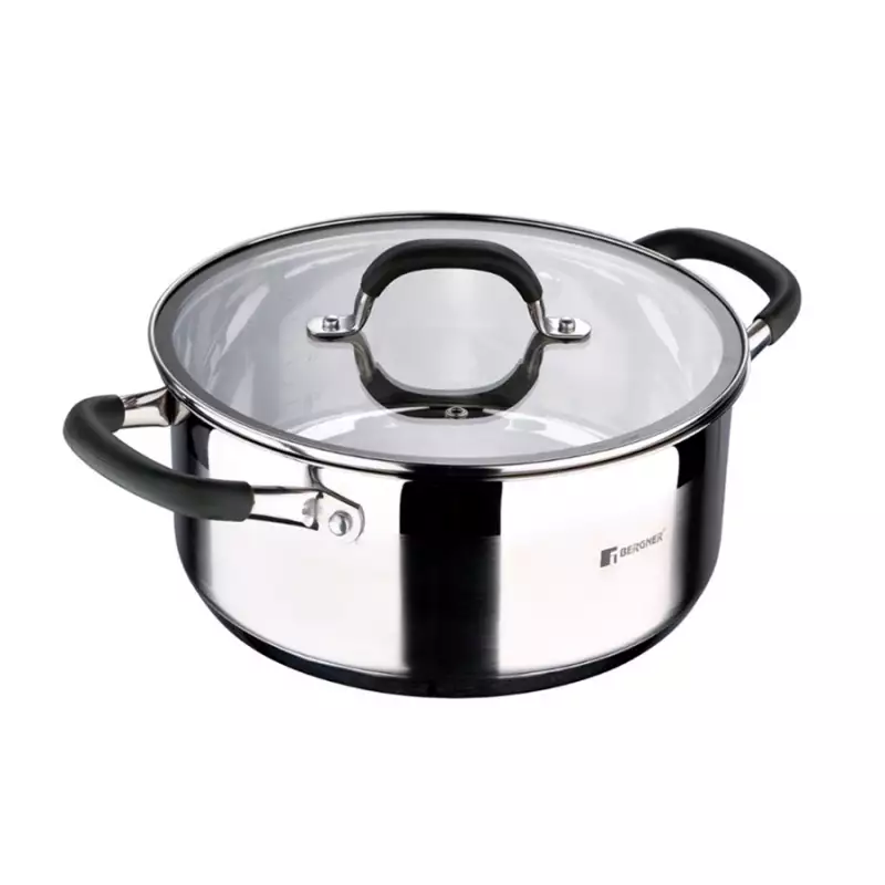 Olla con Tapa 24 cm - 4.5 Ltrs, fabricado en acero inoxidable con antiadherente cerámico ppg fusion libre de tóxicos (pfas free) mango en acero inoxidable con recubrimiento en silicona suave al tacto, manteniendo asas frías, resistente cuerpo fabricado en aluminio forjado 3.5 mm, distribución uniforme del calor y ahorro de energía, base de inducción con partículas de acero apta para todas las cocinas ( gas, vitro, inducción, eléctrica), resiste a arañazos y corrosión.