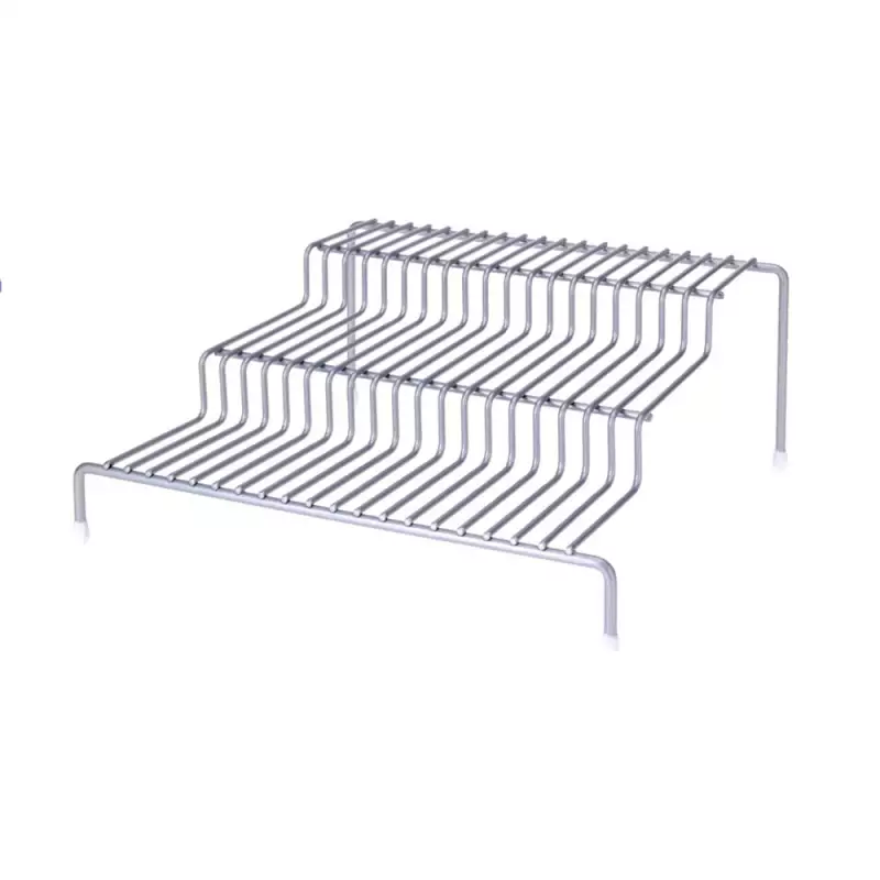 Color Blanco, con tres niveles. Tamaño: 26 x 25 x 11.5 cm. Peso: 490 Grs. Con recubrimiento de polvo gris. Permite una mejor organización del espacio en la cocina gracias a su diseño de tres niveles. la construcción escalonada permite un fácil acceso a los artículos almacenados, eliminando el problema de los productos ocultos o difíciles de alcanzar en la parte posterior del gabinete. Patas antideslizantes: el estante tiene cuatro patas de goma que brindan estabilidad adicional y protegen la encimera o el gabinete contra rayones.
