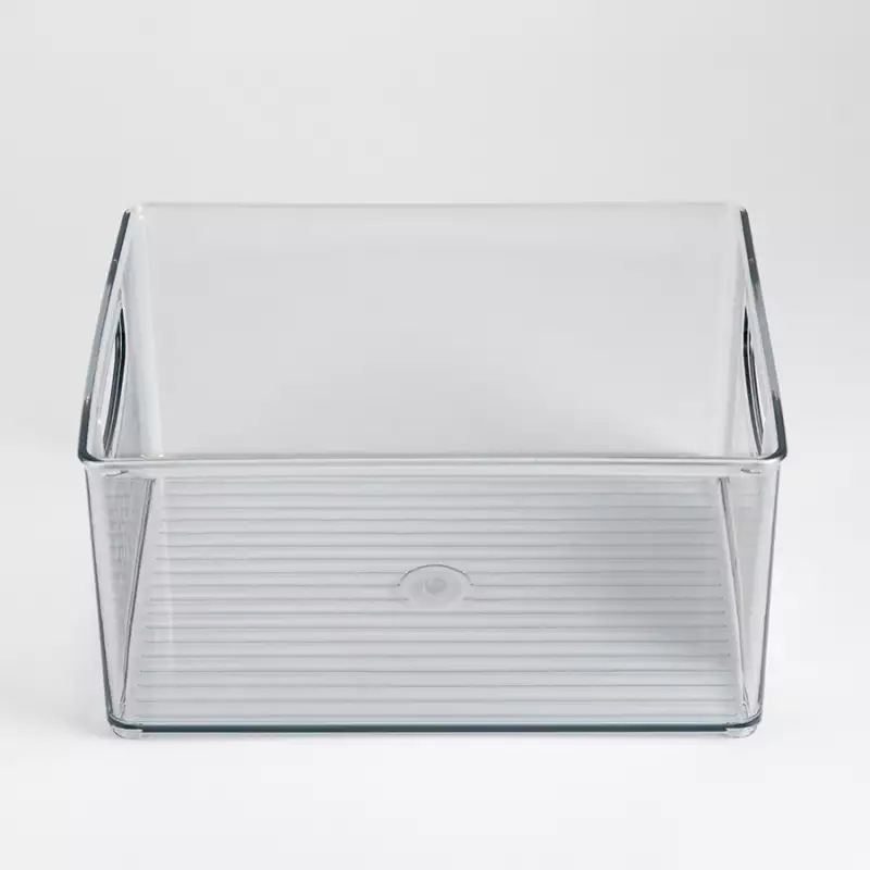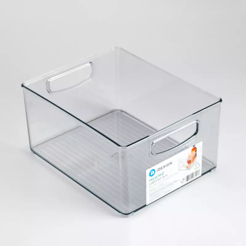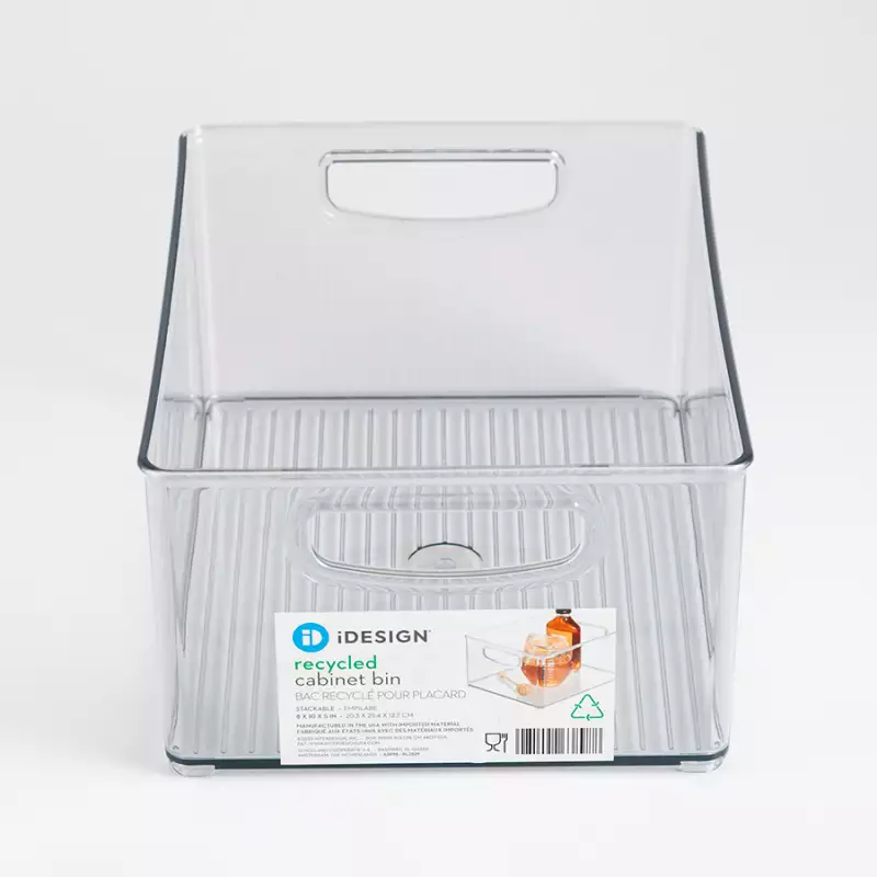 Organizador Interdesign. Cuadrado con asas en dos de sus lados. Fabricado en acrílico transparente. Mide: 20.03 x 20.04 x 12.07 cm, es liviano y resistente con un peso aproximado de 0.48 Kgs.