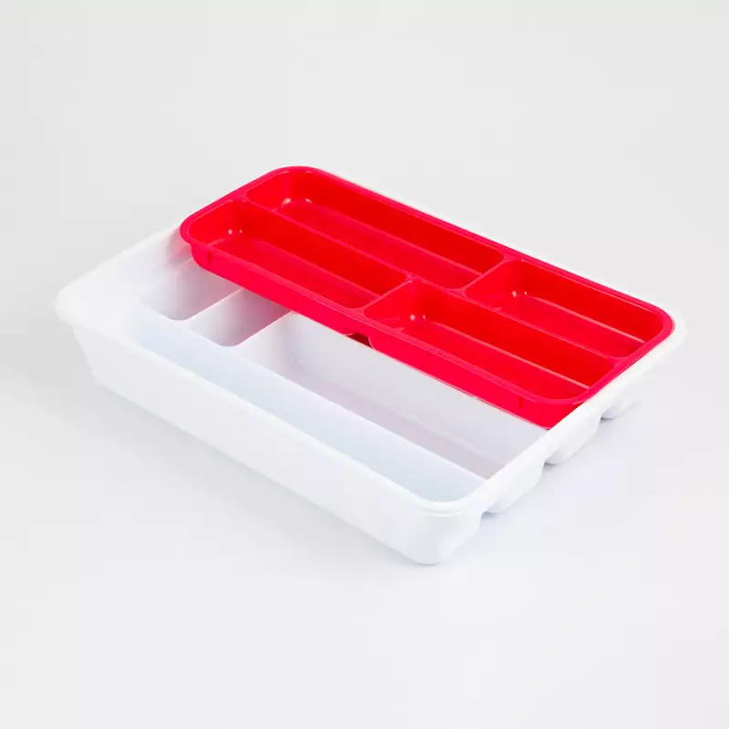 Organizador Plasticforte Surtido - Poliestireno, ideal para mantener en orden cubiertos, utensilios u objetos en la cocina. Con un diseño amplio y funcional, sus medidas de uso son 30 cm de frente, 7 cm de alto y 40 cm de fondo, lo que facilita su organización y ubicación en diferentes espacios. Está disponible en colores surtidos, lo que añade un toque de color y versatilidad al ambiente. Su peso aproximado es de 0,50 kg, lo que permite una manipulación ligera y cómoda. Producto fabricado en España.