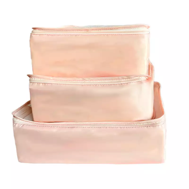 Ideal para mantener tu equipaje ordenado, los organizadores de equipaje rosados incluyen varios bolsillos y separadores, perfectos para clasificar ropa y accesorios.