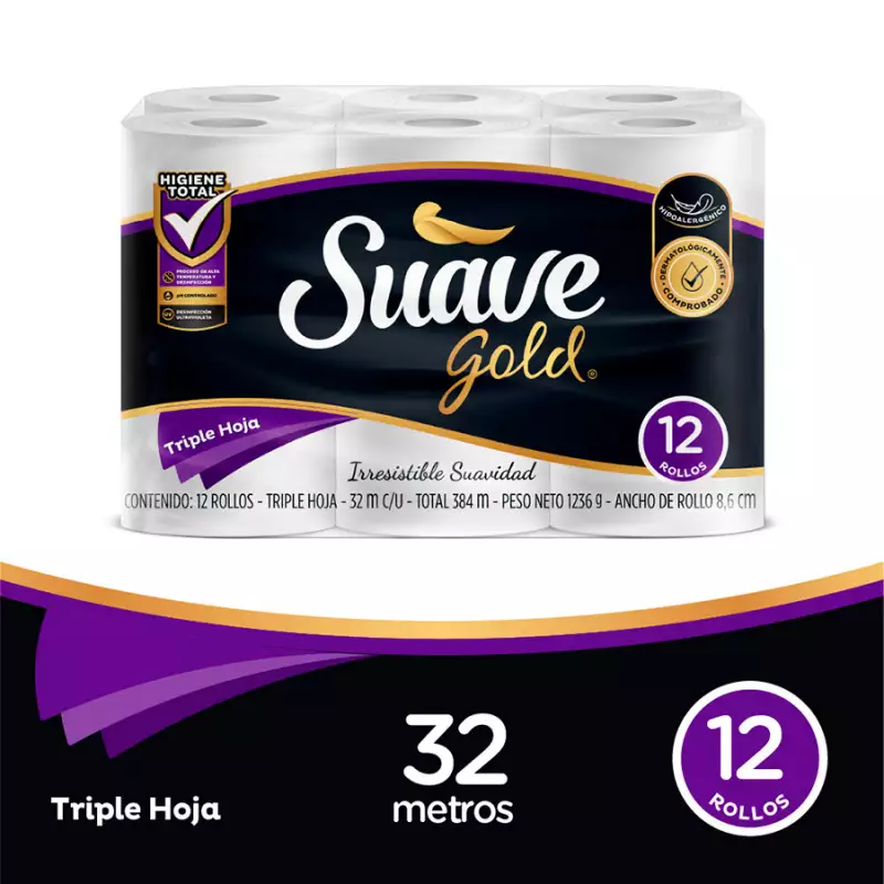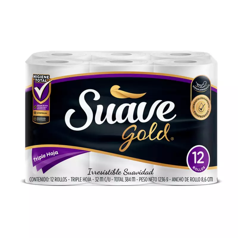 Papel Higiénico Suave Gold Triple Hoja X 12 Rollos X 34 M