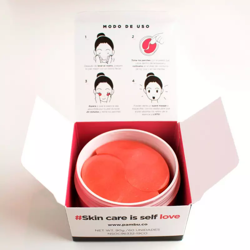 Descubre el secreto para una mirada fresca y rejuvenecida con los Parches de Hidrogel PAMBÚ EYE SPOT! Este increíble tratamiento está diseñado para revitalizar y embellecer la delicada piel del contorno de tus ojos, proporcionándote una experiencia de lujo desde la comodidad de tu hogar. Limpia y seca tu rostro.Aplica los parches debajo de los ojos y déjalos actuar durante 15-20 minutos.Retira los parches y masajea suavemente el área para facilitar la absorción de la esencia restante.