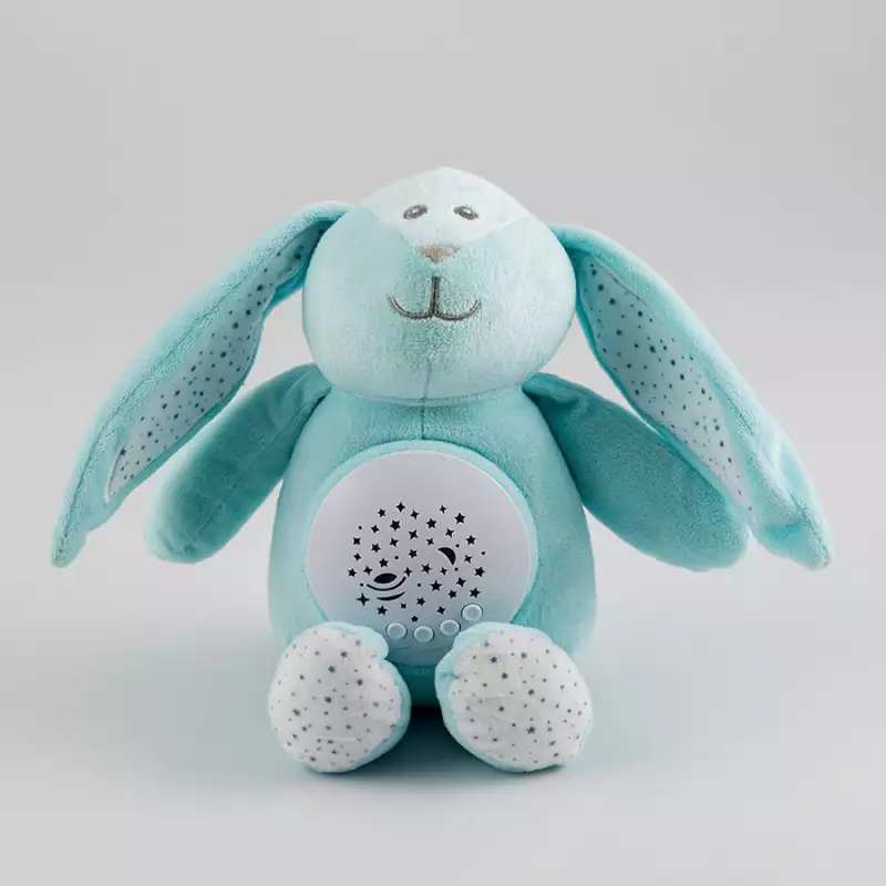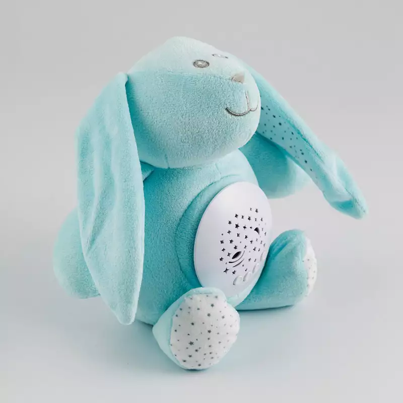 Conejo proyector de luz nocturna para bebés, reconfortante ayuda para tu hijo al dormir con música de cuna, perfecto para un entretenimiento de sueño fácil para niños pequeños recien nacidos o de edad preescolar, fácil de operar y limpiar, súper suave, hecho de material lavable a mano, requiere 3 pilas AAA no incluídas, dimensiones del producto 9.2x13.5x26.5cm. Edad recomendada de uso mayor de 3 años